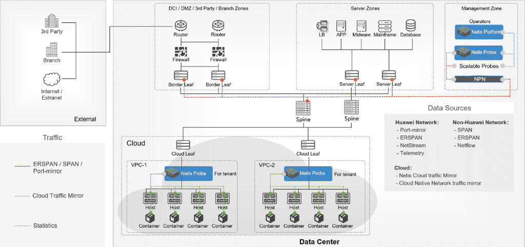 Capture passivamente tráfego espelhado (SPAN/ERSPAN/NPB/TAP) e fontes de fluxo, fora de banda.